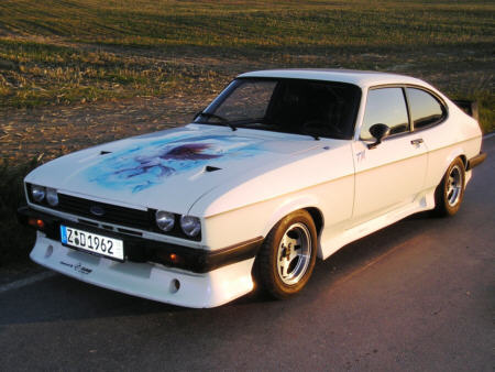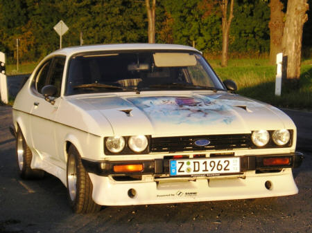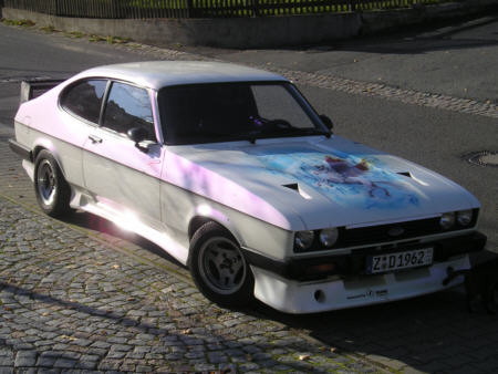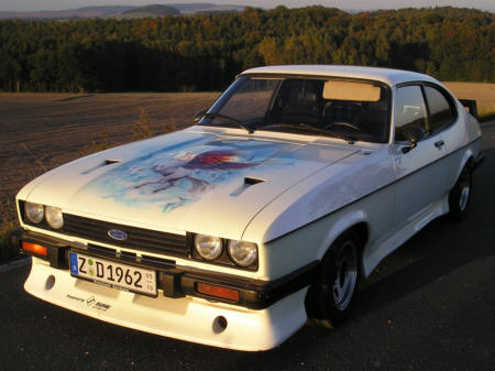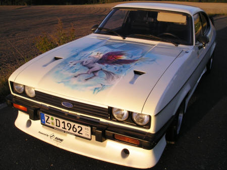 die Historie seines Capris wissen !!! Diethardhat den Wagen im April 2005 gekauft. Der letze Briefeintrag stammte aus 2001 (Groß -Gerau,Kennzeichen GG-). Da das ein Ersatzbrief war,muß das Auto auch vorher schon länger stillgelegt gewesen sein. Das Airbrushbild(Wild Pegasus) trägt eine Signatur von 1991. Diethardt vermutet daß der Capri um die Zeit neu aufgebaut wurde. Vielleicht hat ihn Anfang der 90er Jahre jemand mal auf Treffen o.ä. gesehen? Diethardt würde sich über entsprechende Infos freuen! Entsprechende Hinweise werden an ihn weitergeleitet. |